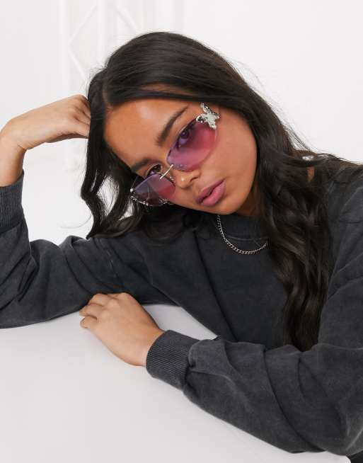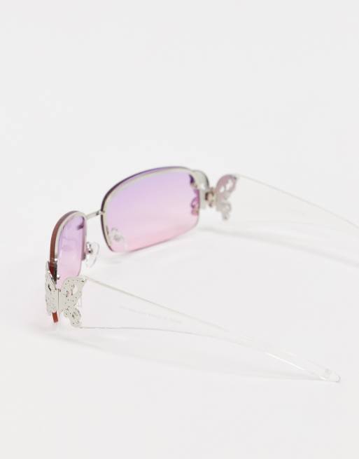 ASOS DESIGN 90s rectangle sunglasses with butterfly side detail