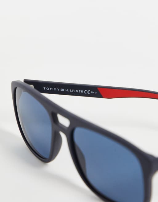 Tommy Hilfiger Aviator zonnebril in marineblauw en rood ASOS