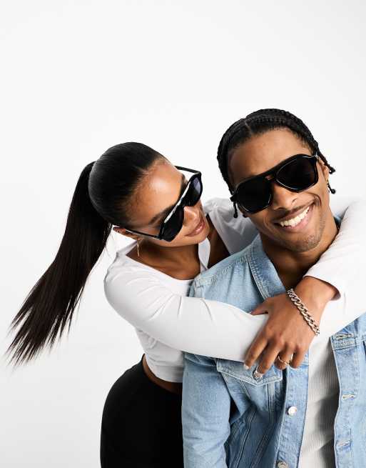 Le Specs Drizzle Aviator zonnebril in zwart ASOS