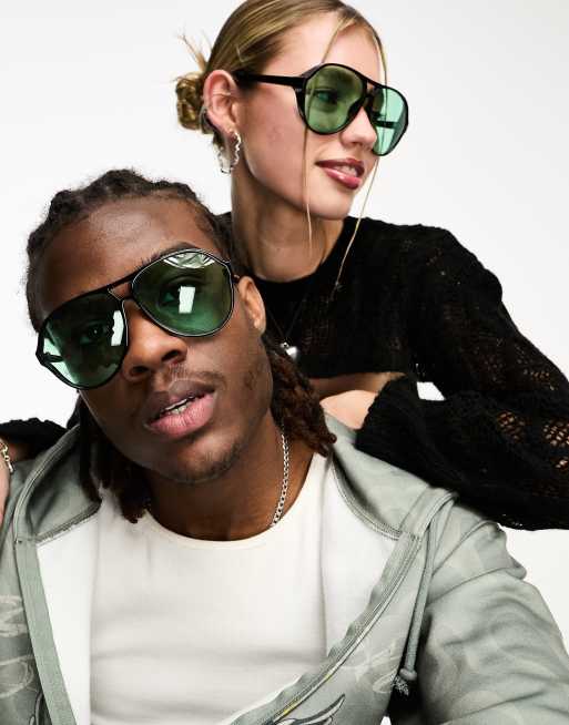 AJ Morgan aviator sunglasses with green lens in black ASOS