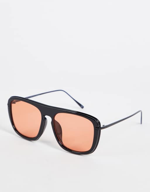 Asos clearance aviator sunglasses, ASOS DESIGN aviator sunglasses in black with orange lens clearance