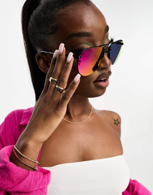 Quay The Playa Aviator zonnebril in zwart roze ASOS
