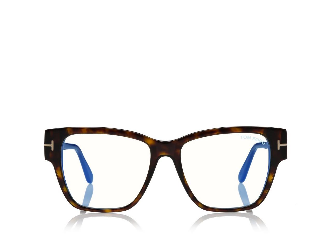 Tom Ford Tortoiseshell Blue Block Soft Rectangle Glasses TOM FORD