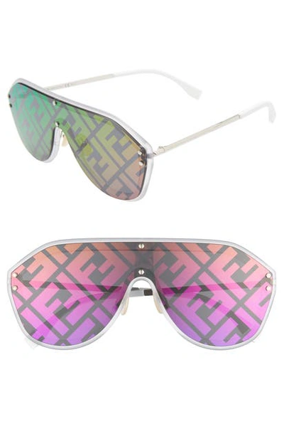 Fendi 147mm Logo Lens Shield Sunglasses In Silver Purple Rainbow ModeSens