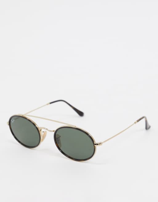 Ray Ban slim oval sunglasses with bar detail in black and gold
