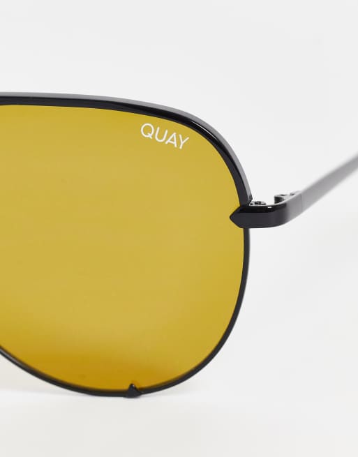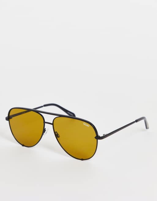 Quay High Key aviator sunglasses in black yellow ASOS