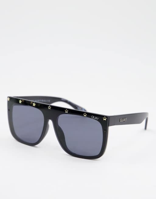 Quay oversized sunglasses in black with gold studs