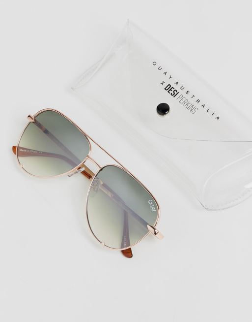 High key green clearance gold, Quay Australia X Desi High Key Mini aviator sunglasses in green fade clearance