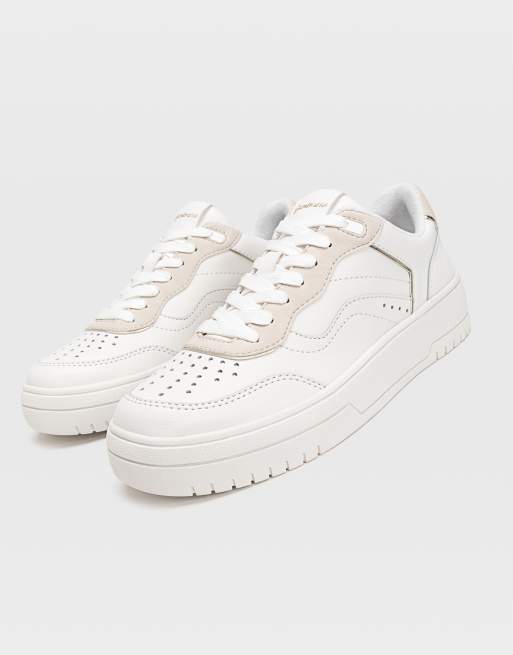 Stradivarius retro trainer with beige contrast in white