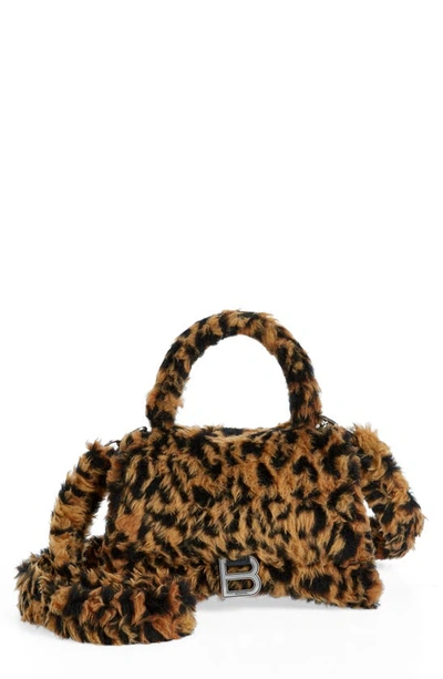 Balenciaga clearance hourglass leopard, Hourglass Leopard Print Faux Fur Top Handle Bag In Beige Brown clearance