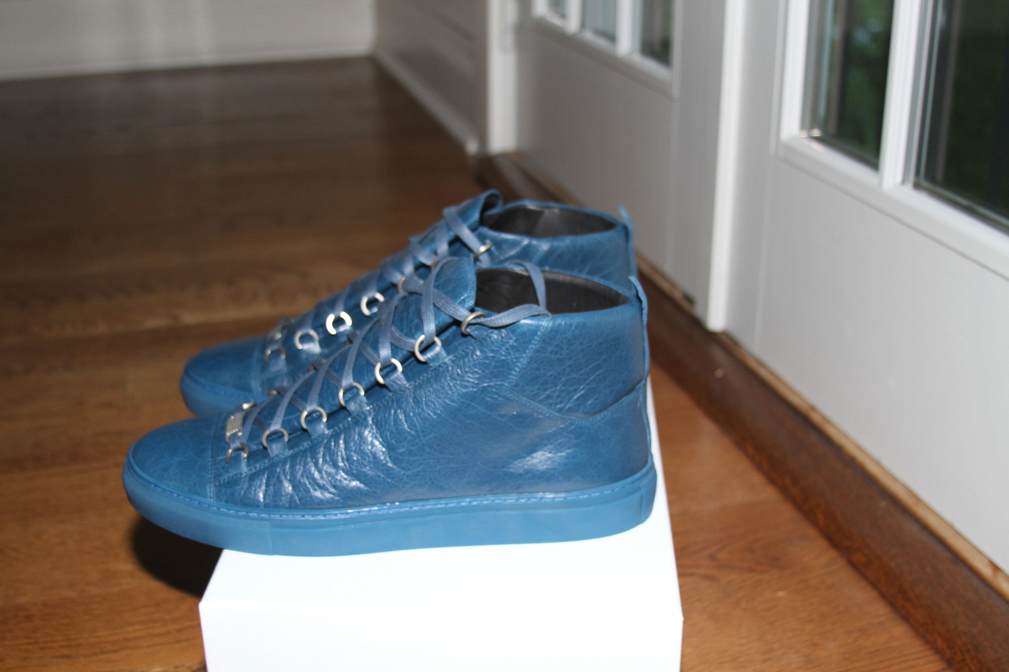 Balenciaga Blue Cracked Leather Arena High top Sneakers Boutique