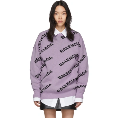 Balenciaga Logo Jacquard Stretch Wool Sweater In Lilac Black ModeSens