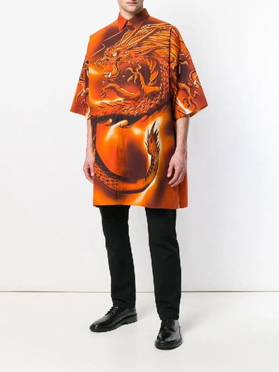 Balenciaga Dragon Button Down Shirt Orange ModeSens