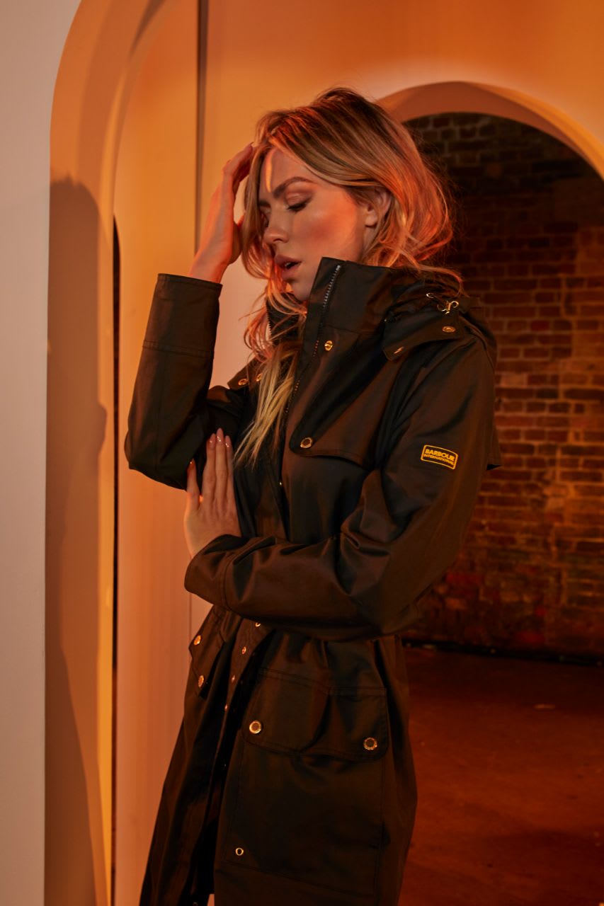 Tessuti Abbey Clancy wears the Barbour International Facebook