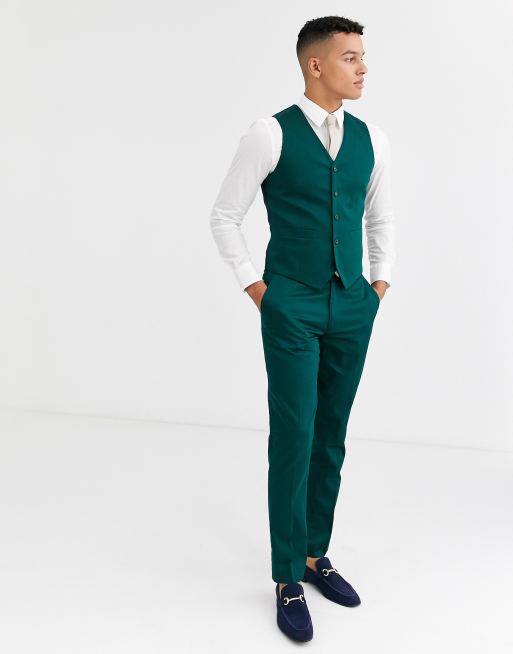 ASOS DESIGN wedding skinny suit waistcoat in cotton in forest green
