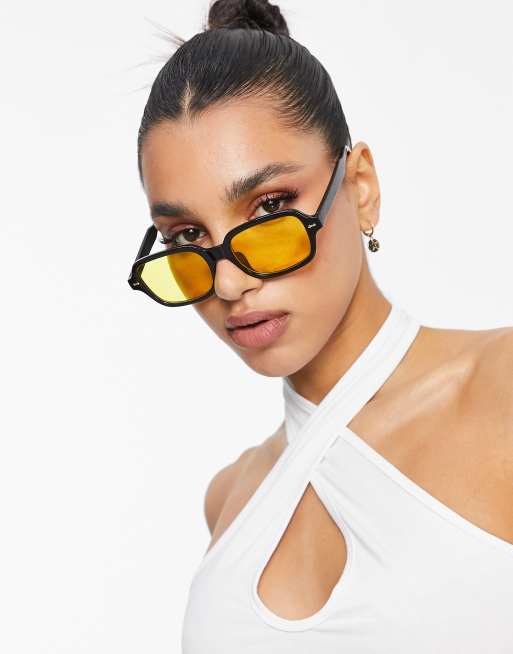 Black sunglasses yellow clearance lens, ASOS DESIGN square sunglasses with yellow lens in black clearance