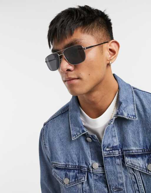 Jeepers Peepers unisex square sunglasses in silver with black lens