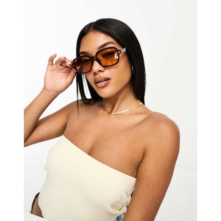 Asos design mid clearance square sunglasses, ASOS DESIGN mid square sunglasses in brown with light brown lens clearance