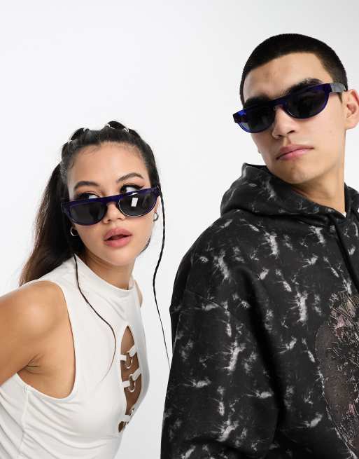 Festival clearance sunglasses mens, A.Kjaerbede Jake flat top round festival sunglasses in dark blue transparent clearance