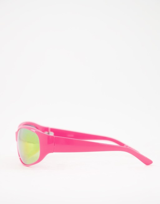 Pink clearance 90s glasses, ASOS DESIGN wrap 90s sunglasses in pink clearance