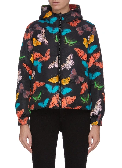 durham Butterfly Print Reversible Hooded Puffer Jacket In Multi colour
