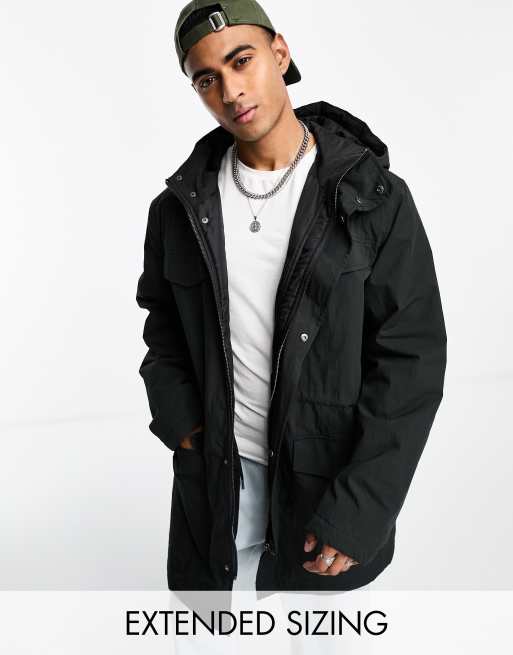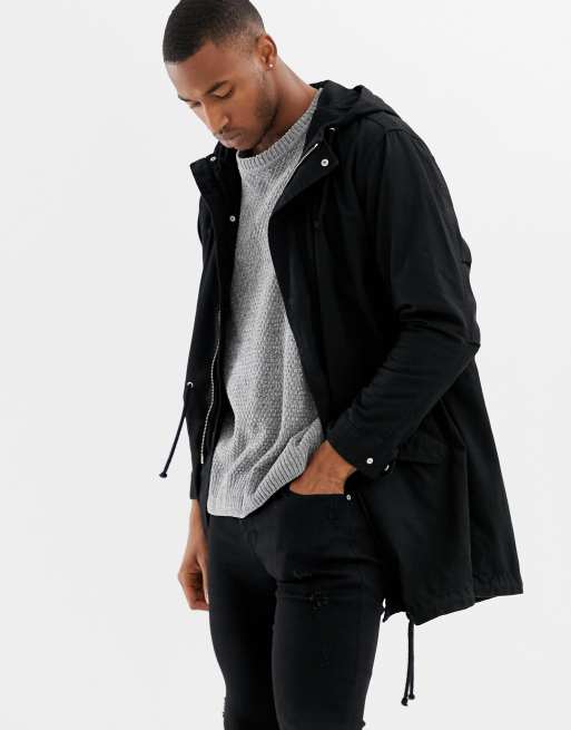 Asos clearance black parka, ASOS DESIGN nylon parka with fur hood in navy clearance
