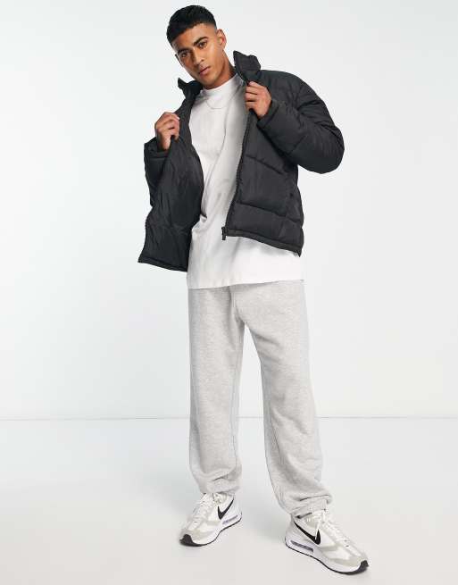ASOS DESIGN puffer jacket in black with funnel neck ASOS