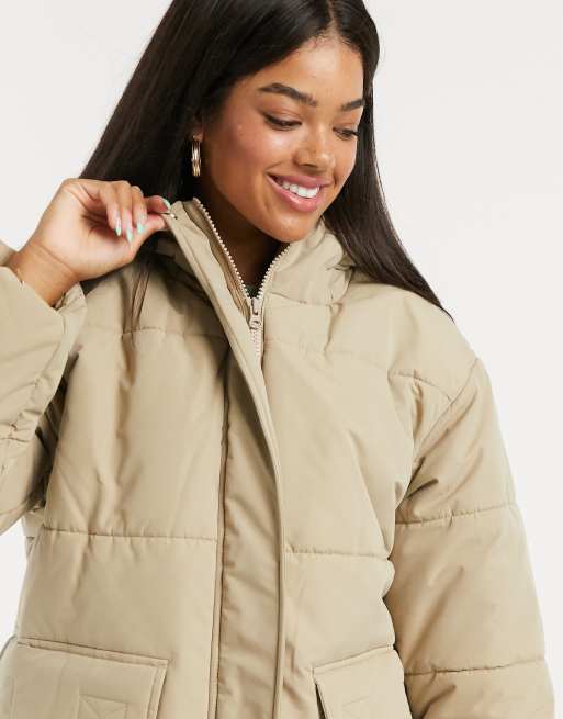 Asos puffer jacket clearance women's, ASOS DESIGN Petite textured puffer jacket in cream clearance