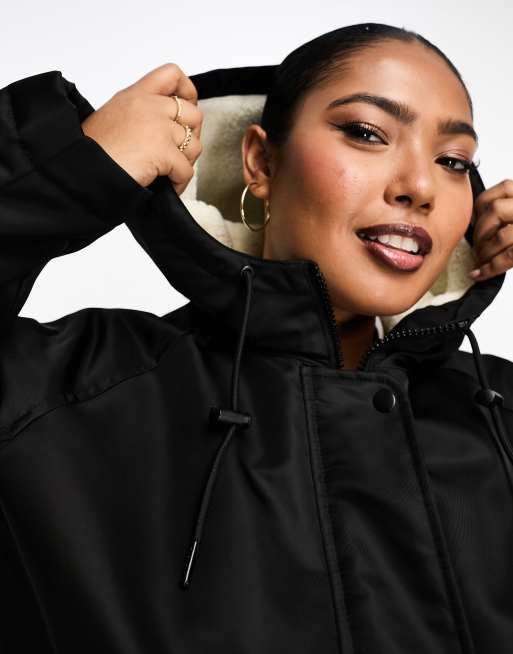 ASOS DESIGN Curve oversized long raincoat with borg lining in black