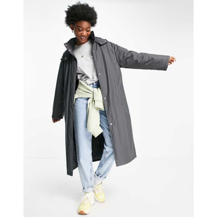 ASOS DESIGN rubberized puffer rain coat in charcoal STONE ASOS