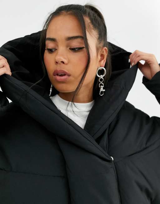 Bershka longline puffer coat clearance with hood in black, Bershka longline padded puffer jacket in gray ShopStyle clearance