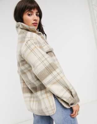 Bershka oversized button front jacket clearance in check, Faux Leather Puffer Jacket clearance