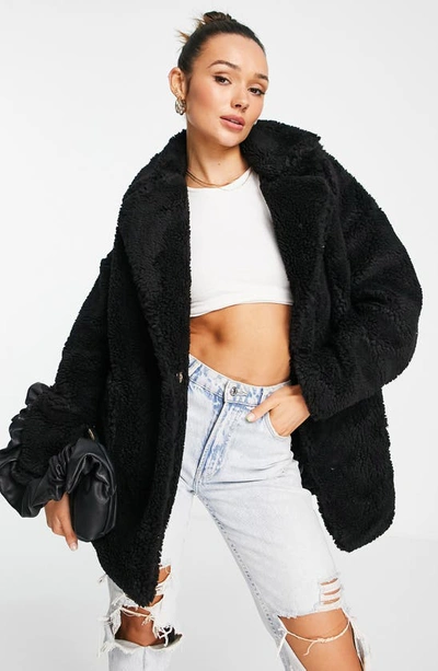 Topshop Borg High Pile Fleece Jacket In Black ModeSens
