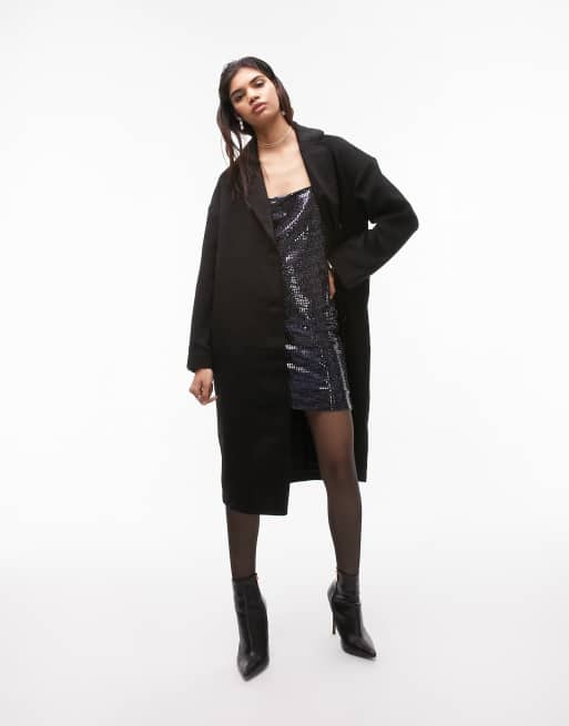 Topshop longline double breasted smart coat in black