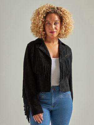 Women s Wrangler Retro Suede Fringe Jacket in Black