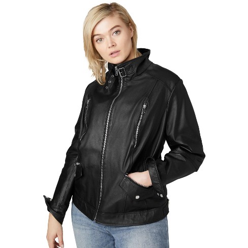 ellos Women s Plus Size Zip Front Leather Jacket 28 Black