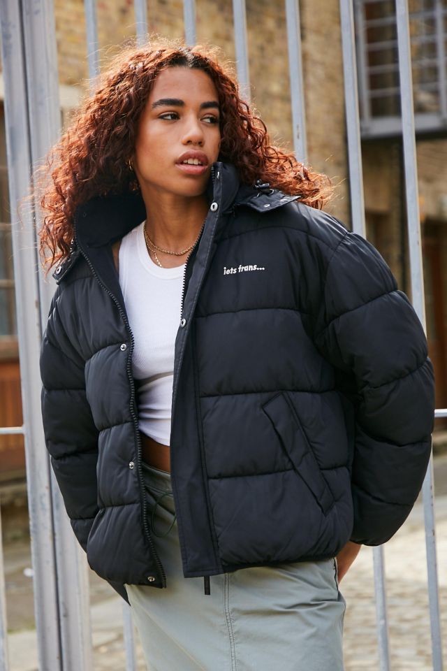 Black puffer coat clearance urban outfitters, Temporary Collective Black Utility Puffer Jacket clearance