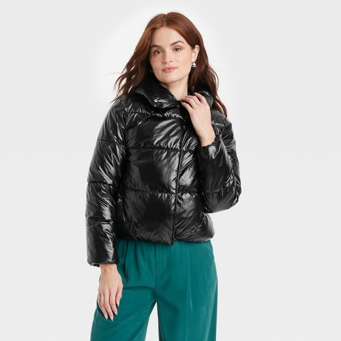 Women s Short Relaxed Puffer Jacket A New Day Black XS