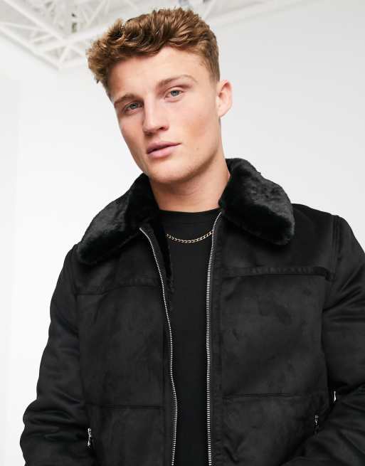 Black suede shearling clearance jacket, New Look faux shearling jacket in black clearance