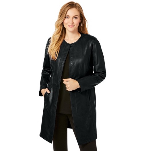 Jessica London Women s Plus Size Three Quarter Length Jacket Real Leather Oversized Long Coat 12 W Black
