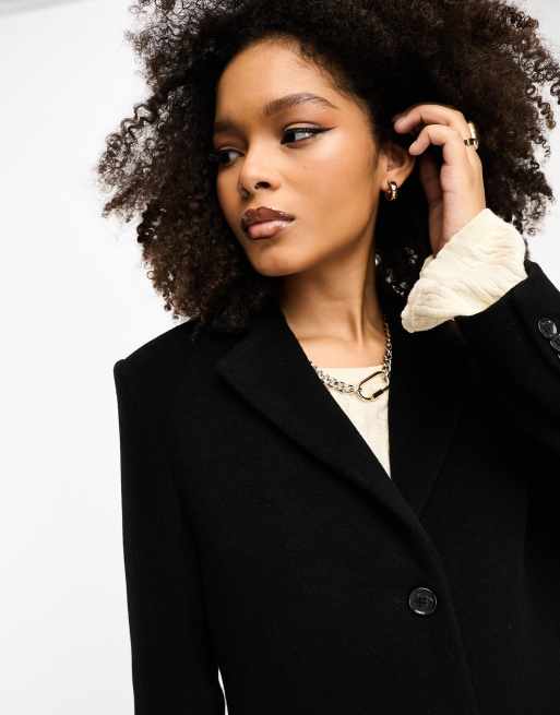Black wool blend clearance coat womens, Monki belted wool blend double breasted coat in black ASOS clearance