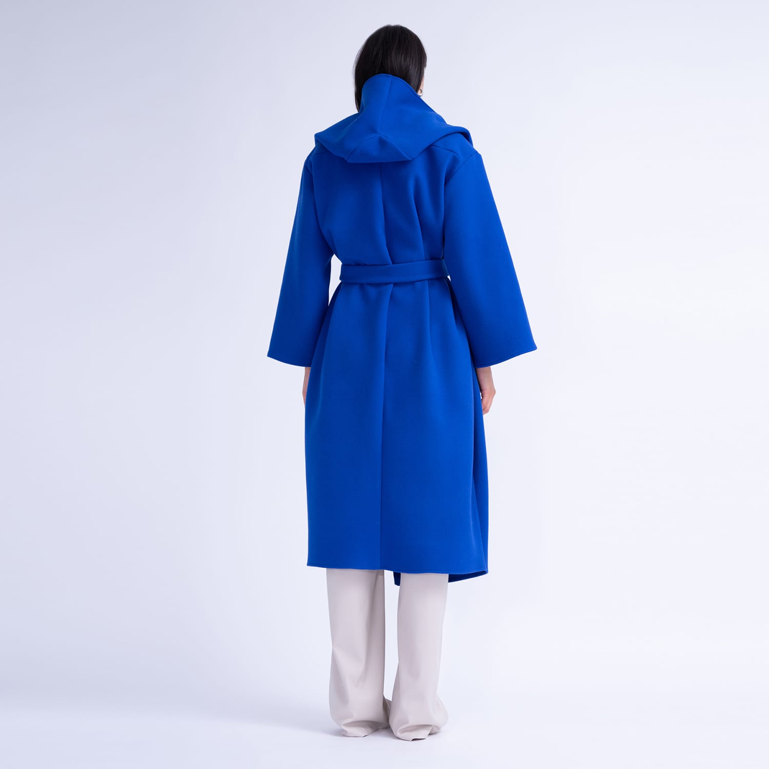 Electric Blue Hooded Coat With Waist Belt by BLUZAT