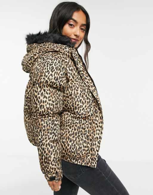 Brave soul fernie hooded clearance puffer jacket with hood, Brave Soul Fernie leopard puffer coat ASOS clearance