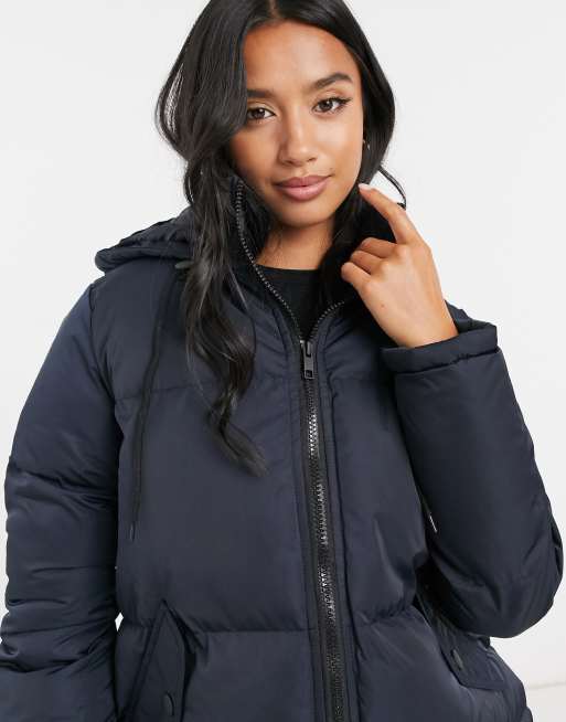 Brave Soul Petite cello maxi longline puffer jacket in navy
