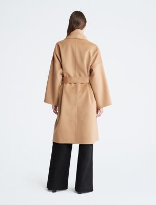 Calvin klein long clearance wool coat, Women s Belted Wrap Coat clearance