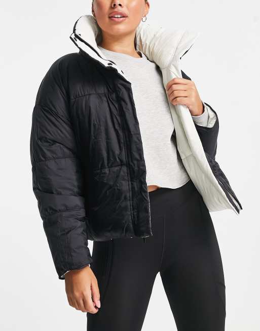Calvin Klein Performance reversible oversized puffer coat in black off white
