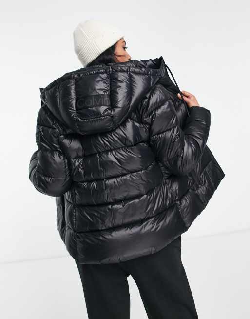 Calvin klein padded clearance hooded jacket, Calvin Klein Jeans Logo Tape Padded Hooded Jacket Mercury clearance