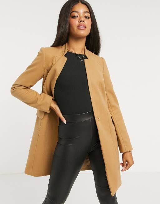 Lipsy coat with zipper pocket detail in camel