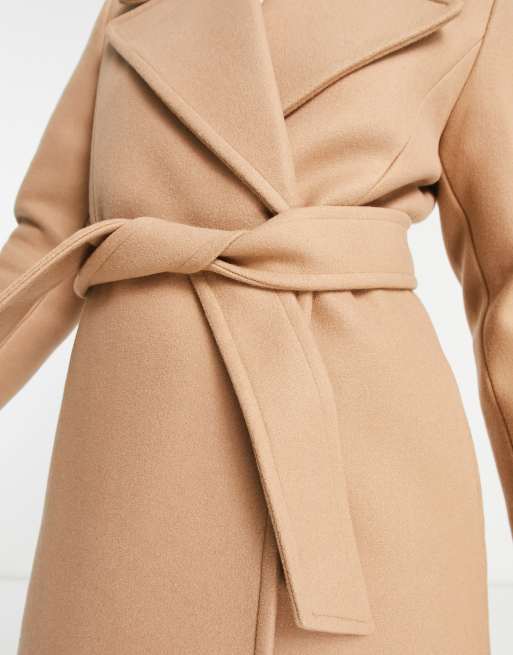 Ever New formal wrap coat with tie belt in camel