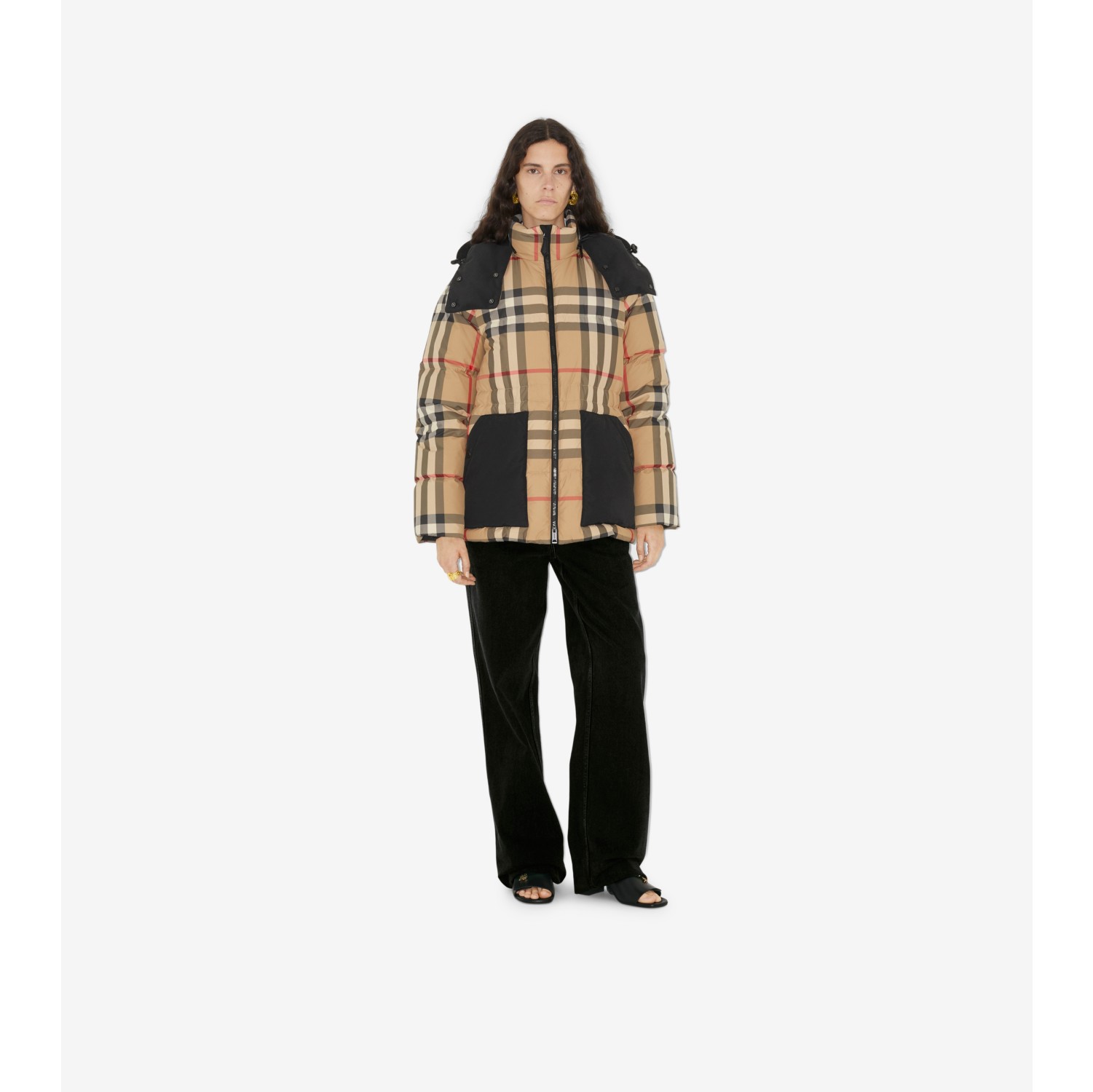Check Puffer Jacket in Archive beige Women Nylon Burberry Official